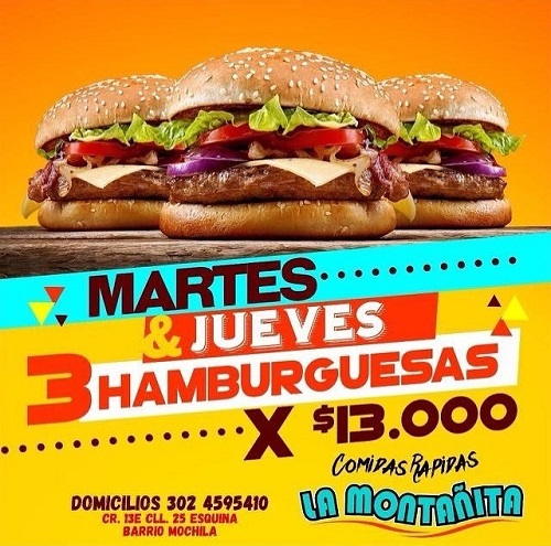 Disfrute de nuestra promoción pague 2 y lleve 3 por sólo $13.000. Aplica los dias Martes y Jueves.